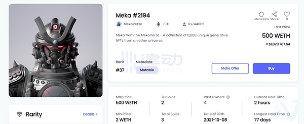 Mekaverse’ün koleksiyonunun bir modülü olan 2194 sayılı NFT 4 yıl evvel rekor kırmıştı.